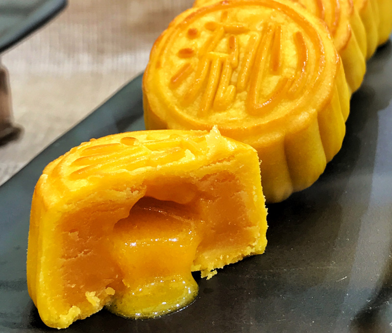 成鴨蛋黃:選用洞庭湖出產(chǎn)的新鮮鴨蛋,通過四十多天的精制,蛋黃色澤油潤。用“烘生黃”這一先進工藝而制作出來的月餅,蛋黃成熟后油潤、松化,蛋黃的醇香、蓮蓉的清香交融,相得益彰。